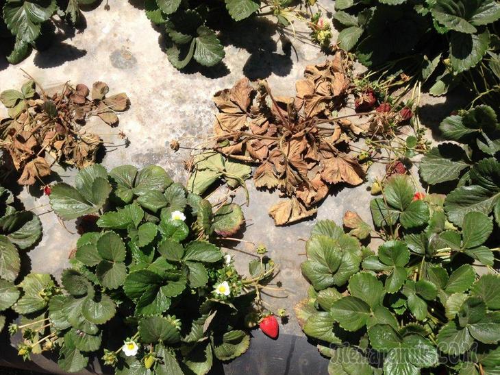 важливо! Багато нехтують обрізанням загиблих листя і вусів ремонтантной садової суниці, однак їх видалення як щит, який захищає рослини від патогенів, адже саме на хворий, старої листі і зимує інфекція.