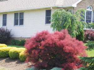 - Акцентувати на ділянці якесь місце зможе допомогти бузок або калина, вони чудово виглядають навіть в одиночних насадженнях.