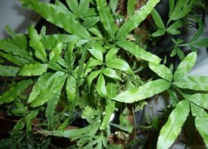 Птерис критський (Pteriscretica) – папороть з перисто-розсічені листям довжиною до 30 см і шириною до 20 см. Складаються з декількох пар світло-зелених довгастих листочків.