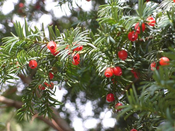 – тис ягідний (Taxis baccata) – все рослина отруйна;