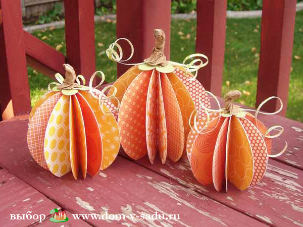 Ще один спосіб виготовлення виробу гарбуза з паперу з використанням паперу з скрапбукінгу. Вона продається в наборах і все листи поєднуються за кольором між собою: