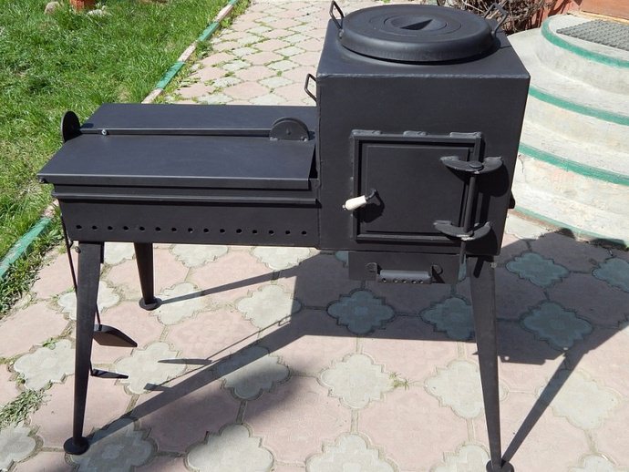 - дров'яна вулична печь є простим і доступним варіантом. Готові моделіімеют варильну поверхню і духовку. Для розтоплення використовуються дрова, вугілля, брикети або інші види твердого палива. Компактний варіант займає мало місця, а мобільність дозволяє прибирати обладнання на зимовий період в підсобне приміщення. Основний недолік такого обладнання представлений недостатньою функціональністю;