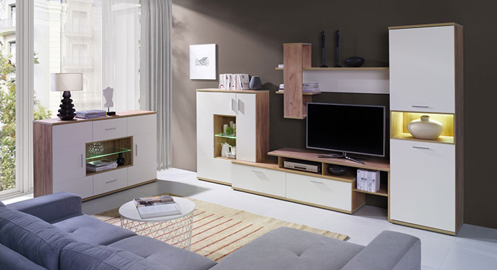 Сучасні напрямки дизайну приміщень схильні до великих зразкам меблів в залі, але не люблять захаращення простору. Обмежтеся неповним набором предметів. Якщо вітальня вашої квартири невелика, то крім дивана, письмового столу і меблевої стінки більше нічого вибирати для неї не потрібно.