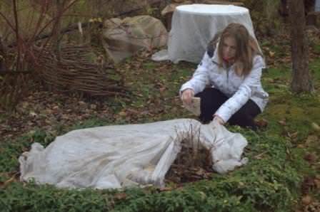 - Надземні частини чагарників ховаються соломою, мішковиною або ялиновим гіллям.