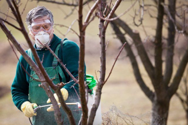 Обробка сечовиною допомагає знищити шкідників, що зимують у верхньому шарі грунту і на гілках дерев