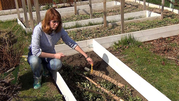 - Потрібно збити короб з дощок, який буде захищати грядку, вкопати металеву сітку по периметру короба на півметра в землю.
