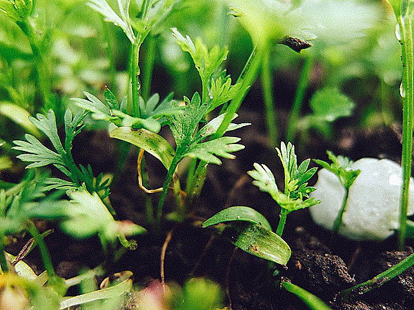 Першими в землю потрапляють в насіння редиски, петрушки, кропу, листового салату, руколи, пекінської капусти, гірчиці.