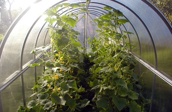 Щоб рослини не постраждали від поворотних заморозків, а також з метою прискорення їх розвитку, розсаду огірків рекомендують вирощувати під плівковим укриттям до останніх чисел травня. Перед тим як робити грядки в теплиці, її необхідно ретельно продезінфікувати, прибрати торішні залишки і замінити пошкоджені елементи. У теплиці невеликих розміром можна спорудити три вузьких грядки, залишивши для обслуговування два проходи.