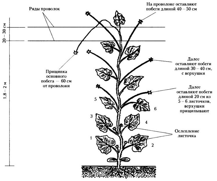 - при формуванні огіркових втеч листя слід зберігати як джерело фотосинтезу і харчування стебел;