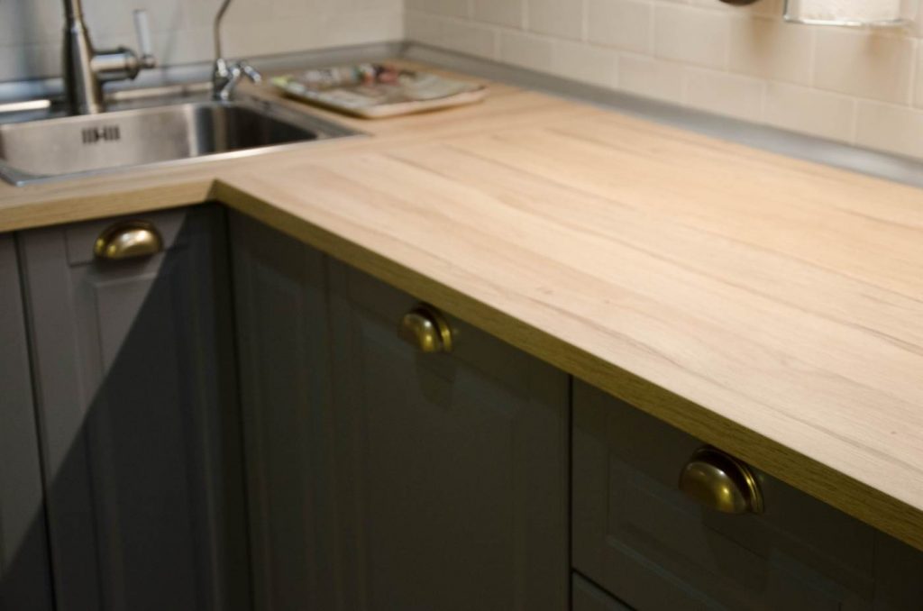 - фактура – також має величезне значення. Експерти рекомендують уникати яскраво вираженої структури дерева, глянцю і т.п. Столешні з рельєфною фактурою дуже складно чистити, а на глянцевих – помітні будь-які дефекти і відбитки пальців.