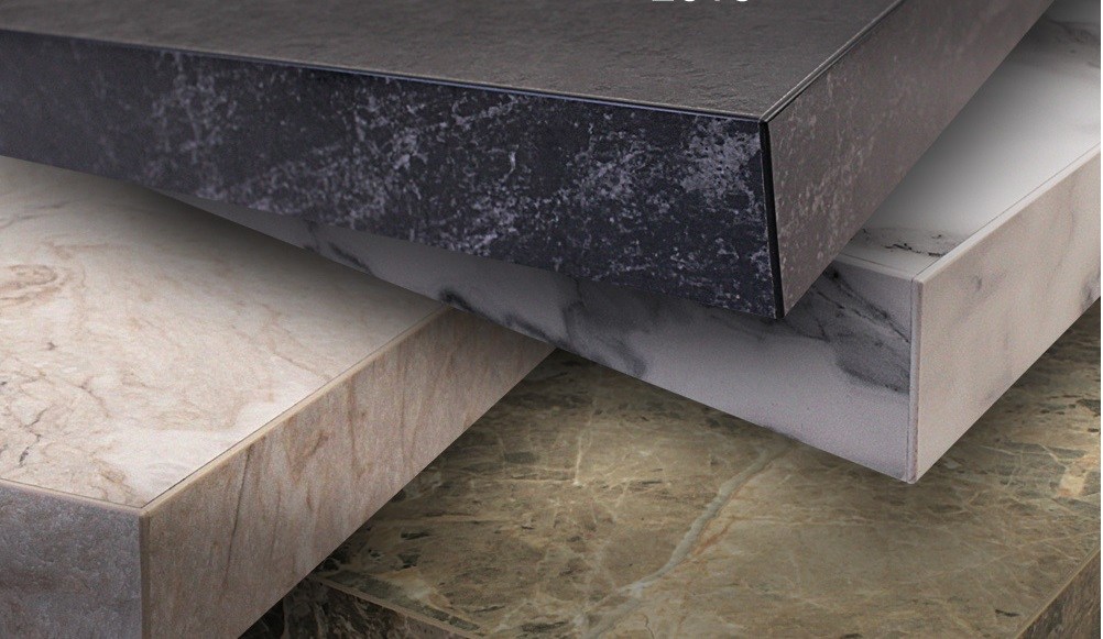 - Велика різноманітність забарвлень і текстур – така деталь кухонного гарнітура може мати більше 150 варіантів забарвлень і текстур, зокрема, зустрічаються матові, глянцеві, шагреневі столешні, вироби, що імітують зовнішній вигляд дерева, кварцу, граніту, мармуру і т.д. Саме тому пластикові кухонні стільниці можна вписати в будь-який інтер'єр.