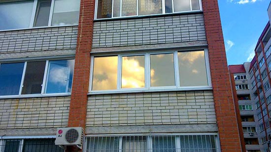 Дзеркальна плівка – незамінна річ для ваших вікон у висотній будівлі або офісі. Сонцезахисна плівка не тільки позбавить від надмірного ультрафіолету в жарку пору року, але і буде володіти декоративними функціями, завдяки широкій палітрі кольорів. У цьому можна переконатися, подивившись дизайнерське оформлення лоджій і вікон на прикладах фото. Монтаж виробу не доставить вам клопоту, так як самоклеюча тонування швидко і щільно лягає на скло, докладніше з приводу кріплення можна ознайомитися в статті або на відео в інтернет – ресурсах.