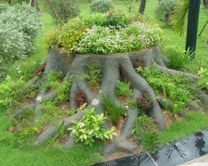 Пні в ландшафтному дизайні: види застосування і способи декору