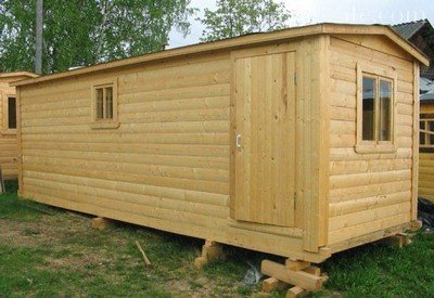 Серед інших пропозицій на ринку ці вагончики відрізняються відносно високою ціною. Якщо побутівка точно залишиться на дачі і стане лазнею, то вироби з колод або бруса – хороший варіант. Слід тільки відразу ж брати саме баню з усіма необхідними перегородками, а комплектуючі (водонагрівач, піч і т.д.) закупити пізніше. Для побудови брусової битовки рекомендується перетин бруса не менше 100х150мм (діаметр колоди відповідно рекомендується в цьому ж діапазоні). Споруда повинна бути ретельно прошпакльовані. Як облицювальний матеріал для дверей і перегородок часто використовують вагонку, але якщо робити бревенчатую конструкцію то можна і обійтися.