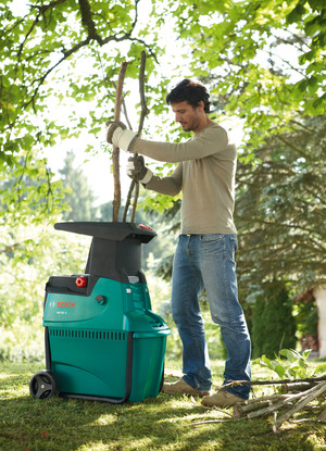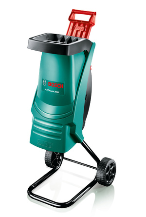 Шредер BOSCH AXT 25D має електромотор 2,5 кВт. Удосконалена конструкція ріжучих валок дозволяє переробляти гілки до Ø40 мм. Функція автоматичного затягування сировини для перемелювання і захист від самочинного вмикання після аварійної зупинки. Вартість порядку 14000 руб.