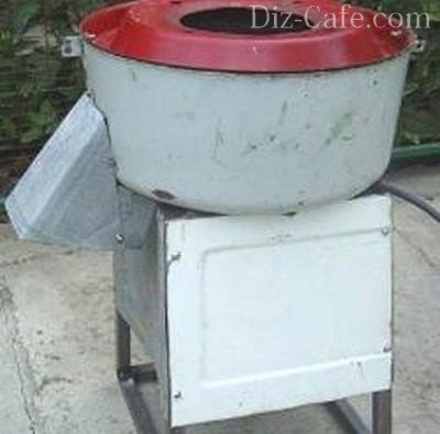 Будь-яка циліндрична ємність, будь то стара каструля, відро або відрізок труби теж підійдуть. Двигун потужністю 180 Ватт можна запозичити у старої пральної машинки. На ножі піде старе ножовочное полотно, а в якості стійок рекомендується застосувати прямокутний профіль 15х15 мм. Ось втулку висотою в 40 мм, на яку будуть кріпитися ножі, доведеться виточити на токарному верстаті.