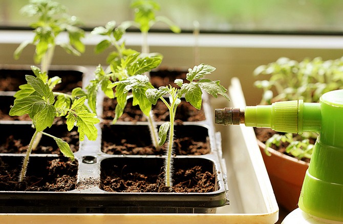 - На відміну від справжньої теплиці в домашніх умовах томатну розсаду просто необхідно зрідка обприскувати водою з температурою не менше 20-22 градусів. Обприскування потрібно проводити тільки за допомогою розпилювача і до появи перших листочків.