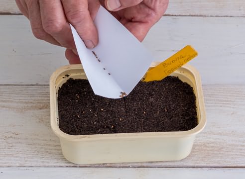 Висівайте насіння у вологий грунт для розсади, присипте їх тонким шаром вермикуліту або піску – на світлі насіння братків не проростають.