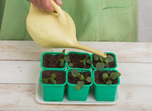 Полив починайте від краю горщика. Якщо в результаті поливу грунт сильно осіла, її можна додати, але не засинайте при цьому сім'ядольні листочки.