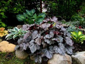 А взагалі, гейхера, як і майже всі тіньолюбиві рослини, Буде дуже ефектно виглядати на клумбах з каменів – в рокарії, а також на альпійській гірці.