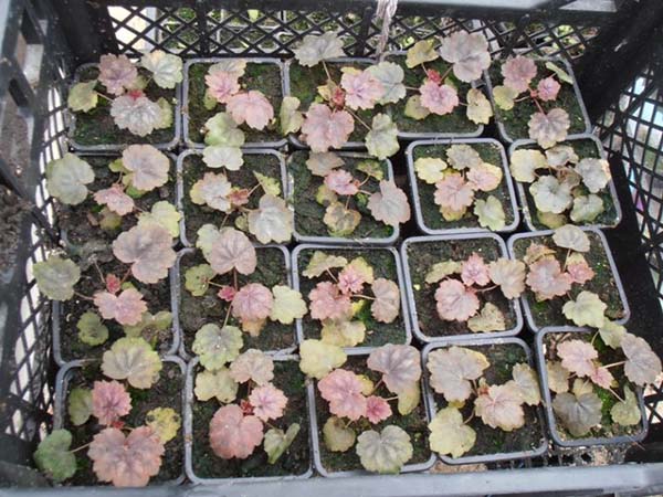 Гейхеру можна виростити з насіння, посадивши на розсаду (приблизно в березні). Посів проводиться виключно поверхнево, тому що насіння дуже дрібні (можна змішати з піском), а значить, ємність відразу потрібно буде поставити на світло. Далі, при появі 2-3 справжніх листочків, распикировать рослини в окремі ємності і в належні терміни висадити зрілу розсаду гейхери у відкритий грунт.