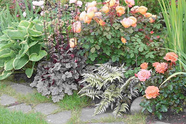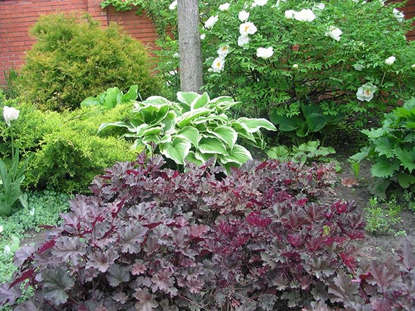Що стосується сусідства, то гейхери будуть прекрасно дружити з наступними рослинами, в тому числі і в комбінаціях з (більшість з них тіньолюбиві):