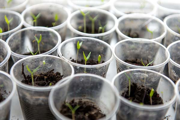 - Пластикові стаканчики. Також користуються великою популярністю у городників внаслідок своєї невеликої вартості і багаторазового використання. Крім того, посів в такі ємності дозволяє витягувати рослини без пошкодження кореня, що знижує стрес при пересадці. Але цей вид ємностей має ряд недоліків. Стаканчики не мають дренажних отворів, тому їх слід робити самостійно, а також для поливу рослин потрібно купувати додаткові піддони. Крім того, вони не мають стійкості і потребують додаткових пристосувань при перевезенні розсади на дачну ділянку.