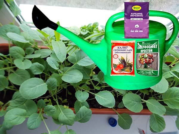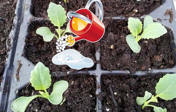 Ще ви не хочете морочитися, то для підгодівлі розсади капусти рекомендується використовувати комплексні мінеральні добрива, які містять азот, фосфор і калій в рівних частках. Або ж приготувати таку підгодівлю з різних добрив, наприклад, на 1 літр взявши 3-4 г сечовини, 3-4 г суперфосфату і 3 г сірчанокислого калію.