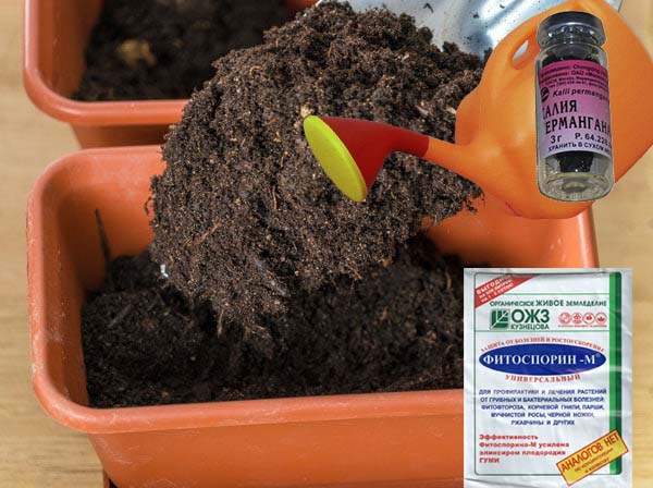 При використанні готового магазинного грунту, його досить просто пролити насиченим розчином марганцівки або спеціальним знезаражувальним препаратом, наприклад найвідоміші марки – «Максим» або «Фітоспорін».