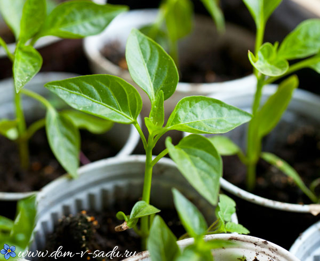 Отже, пройшли 4 тижні, з'явилися 2-3 справжніх листка на розсаді перцю. Як її виростити далі? Якщо паростки сидять в окремих стаканчиках, то їх пересаджують в ємності по 0,5 л, а потім в ті, які мають обсяг 1 літр. При цьому потрібно було повністю зберігати земляний кому навколо рослини. Краще, якщо горщики будуть з матеріалів, які розкладаються в грунті. Тоді пересадку перцю можна проводити не виймаючи розсаду перцю з маленьких ємностей.