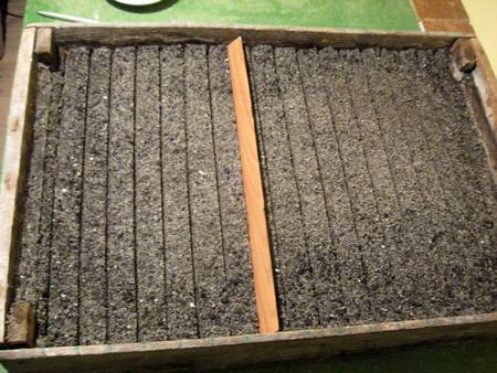 Як і в першому випадку посадковий ящик наповнюється землею і проливається розчином марганцівки. Лінійкою робляться борозенки глибиною 5 – 7 мм. і в ці борозенки разлаживаются насіння (через 1,5 – 2 см.).