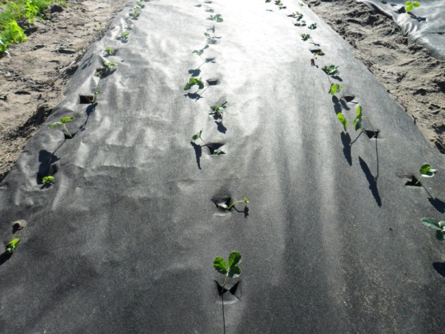 Зараз актуальним стало спосіб висадки полуниці на чорне агроволокно (також зване спанбонд), що представляє собою екологічно чисту тканину, яка володіє повітро-і водопроникність. Висадка рослини на агроволокно (тобто на покривний матеріал) дозволяє значно знизити витрати по догляду за культурою і значно підвищити урожай ягід. Головне, знати всі тонкощі.