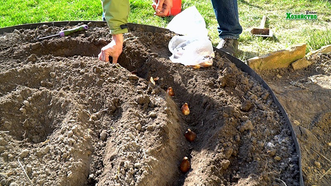 На яку глибину садити тюльпани – тюльпани традиційно садять в лунки глибиною рівної 3 висоти цибулини.