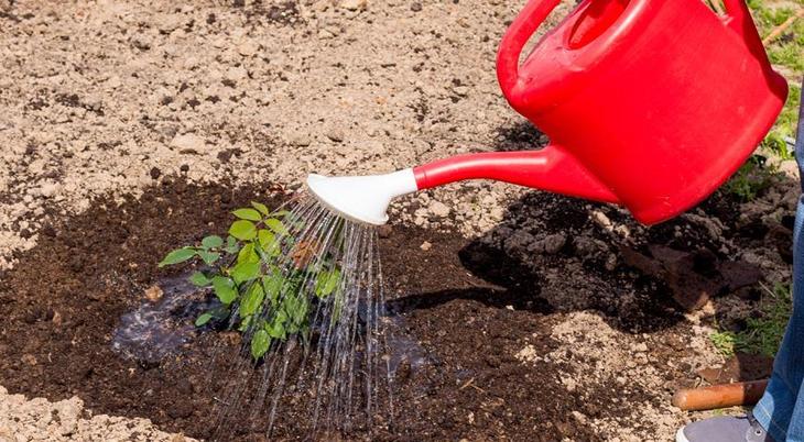 5. Грунт злегка утрамбуйте і рясно полийте. Щоб вода краще просочилася, це краще зробити в декілька заходів. Усього витрат рідини повинен скласти 1-2 відра на кущ.