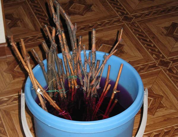 - деякі виноградарі незалежно від стану живців проводять їх знезараження (Все в тому ж розчині марганцівки протягом 30 хвилин, а потім промивають під проточною водою).