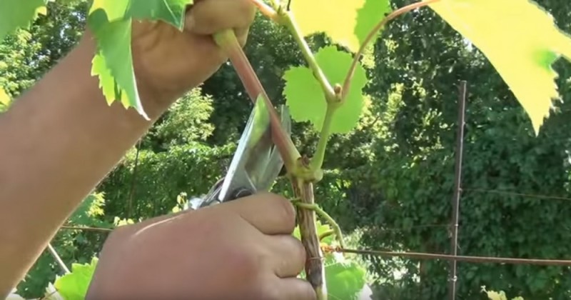 - Виноградники густий посадки і на низькій шпалері. Тут карбування рекомендовано проводити кілька разів. Перший раз – за тиждень до цвітіння культури, а потім у міру необхідності, залежно від виростання пасинків.Карбування пасинків проводять в середньому на 7 см, залишаючи на кожному по кілька листів.