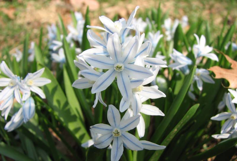 Основна перевага Пушкіна полягає в тому, що висаджувати її можна в незручні місця, – близько дерев, серед багаторічників. Після того як рослина відцвіте, можна посадити однолетники. Так квітник довго не втратить декоративність.