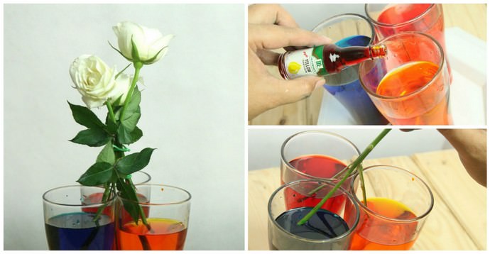 - від концентрації барвника у воді буде прямо залежати інтенсивність кінцевого фарбування пелюсток троянди;