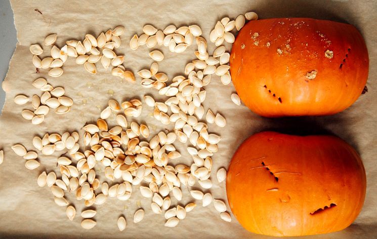 Насамперед доведеться терпляче попрацювати з гарбузом: обмити, видалити насіння і прожилки, нарізати великими шматками, розкласти шматки гарбуза шкіркою вниз на деко, обгорнути їх все одним великим листом фольги, щоб вони пропарились, і помістити в духовку, розігріту до +190 С на 40 хвилин. Після вказаного часу деко витягти, фольгу зняти і кожен шматок, розм'якшений, кілька разів проткнути гострою вилкою. Коли цей процес завершите, поверніть деко з шматками гарбуза в духовку хвилин на 15-30, щоб гарбуз підсушити і допекло.