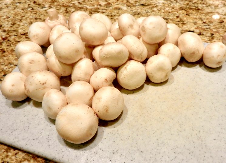 - Підготувати печериці, обрізати зайве, великі екземпляри розрізати на чотири частини і все промити під струменем води. Дати стекти надлишку вологи.