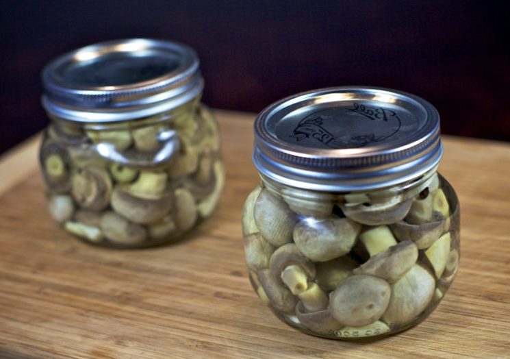 При заготівлі маринованих шампіньйонів в домашніх умовах особливу увагу потрібно приділити стерильності процесу і достатності консерванту: тара повинна бути стерильною і сухий, оцту має бути допустима кількість, а зберігати довше 1 року не рекомендується.