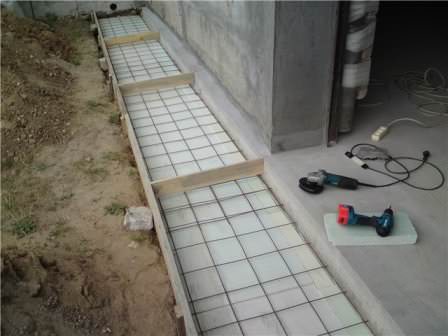 Коли місце готове, слід максимально прив'язатися до фундаменту, прибити до нього арматуру, до якої і приварити сітку. Особливо важливо знати міру, але підстава вимощення має бути виконано якісно.