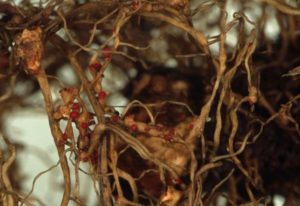Навіть невеликі пошкодження на коренях, викликані нематодою, сприяють проникненню в тканини патогенних бактерій, грибків і вірусів.