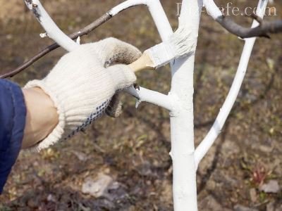 Так як в березні ще нерідко спостерігаються скачки температури від мінусових вночі до + 10-12 ° вдень, кора не може швидко перебудовуватися на подібний режим. В результаті під сонячними променями стовбури і гілки отримують опіки, а вночі – морозобоїни. Щоб уберегти сад від пошкоджень, саме на початку березня (а не перед Великоднем!) Проводять весняну побілку дерев. Можна купувати вапно і гасити в окропі, а можна і спеціальну фарбу. Білять в безвітряний день при плюсовій температурі на вулиці.