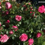 А троянди простягали прямостоячего типу, дуже компактні. Цвітіння рясне і дуже тривалий. Рослина не боїться дощів, а квітки не втрачають яскравого і соковитого фарбування навіть під тривалим впливом прямих сонячних променів.
