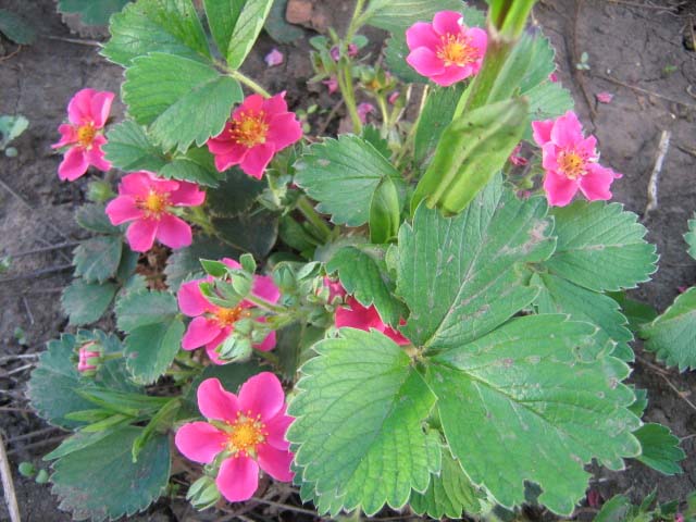 Полуниця (Fragaria) з рожевими квітками або плодами виглядає дуже привабливо. При правильному догляді вона дає хороший урожай, а після кущі можна використовувати як сидерати, перекопавши їх разом з грядками.