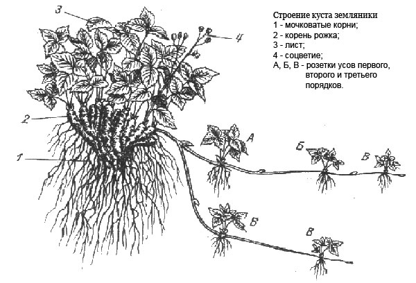Вусами називаються пагони полуниці, на яких розвиваються розетки листя, а пізніше з'являються корінці. Закріплені в землі, вони утворюють нове молоде рослина.