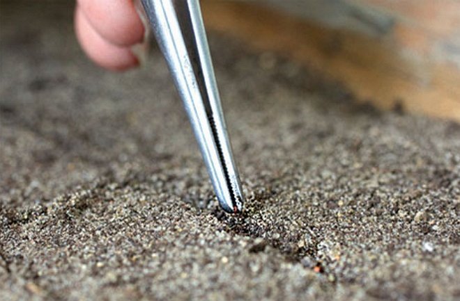 Сам посів насіння полуниці під силу кожному і займає не більше півгодини. Досить пролити грунт слабким розчином марганцівки, після висихання насипати його в контейнери, розкласти зверху пінцетом насіння полуниці і обприскати теплою водою з пульверизатора. Відстань між насінням потрібно залишити близько 2 см, а сам контейнер зверху накрити плівкою або прозорою кришкою.