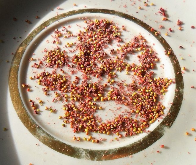 - Висохлу масу перетріть в долонях для відділення насіння.