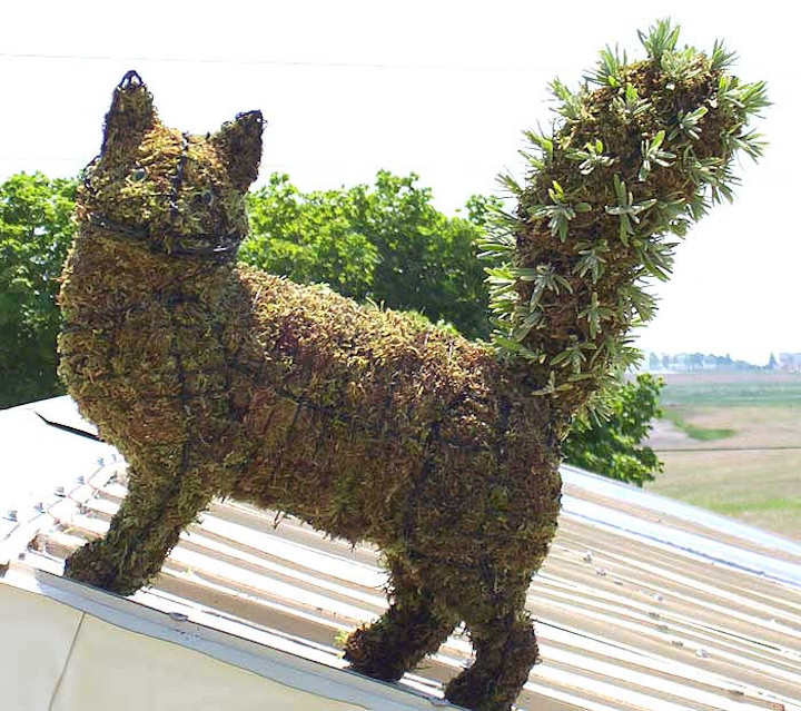 Ретельно прорисуйте образ майбутнього звіра в уяві – і потім ви можете приступати до створення скульптури. Перенесіть форму звіра на дріт, згинаючи її і скріплюючи в'язанням дротом. Можна використовувати для закріплення каркаса зварювання, але простіше це зробити звичайним дротом. Низ майбутньої скульптури необхідно обгорнути сіткою і насипати туди спеціально підготовлений грунт. Підготувати його досить просто: потрібно всього лише додати туди поживні речовини і солому – ось і готовий каркас, заповнений землею.